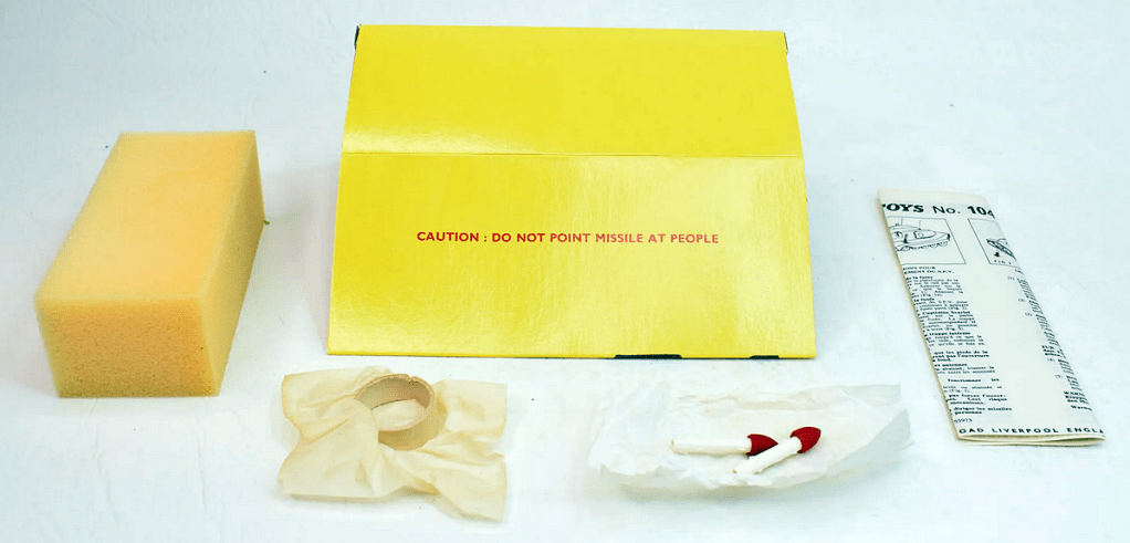 The rocket wasn’t strictly accurate, as the real vehicle had a machine gun in the nose, but it had great play value. The rocket had a similar mechanism and missile as 100 FAB1.