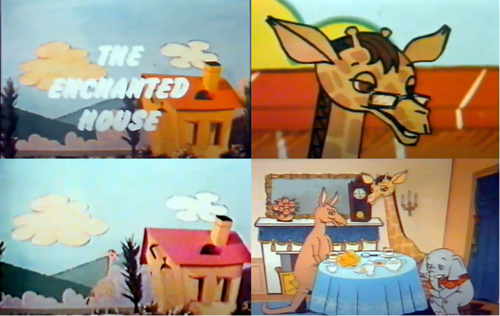 The Enchanted House was home to a group of friendly animals who lived there, including Nellyphant the elephant, Joe the kangaroo, Tiny the giraffe, Bob Robin, Leo the lion cub, Sammy seal, Worm and other friends. It was shown at lunchtime on ITV between 1970 and 1972.