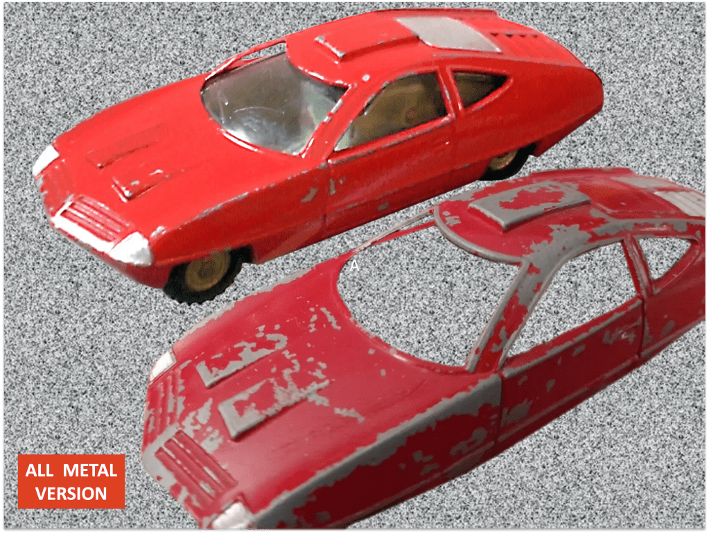 A red Ed Straker’s car has appeared in one reference source. This probably refers to the red plastic version above. Recently, a couple of listings on an auction site may suggest that there was a short production run of a red metal variant.