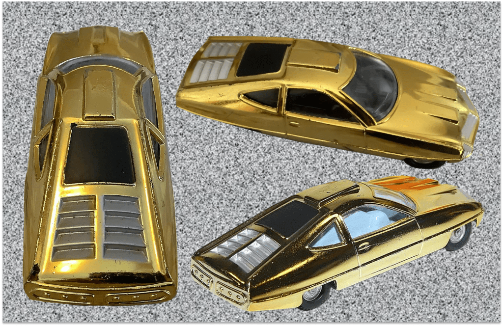 Another TV tie-in from the U.F.O. series was Ed Straker’s Car. It featured a ‘keyless clockwork motor’ and was produced for four years. The most common colour was a gold chrome finish.