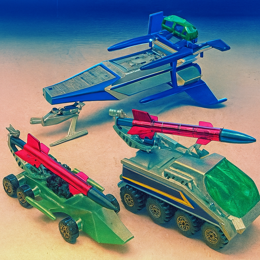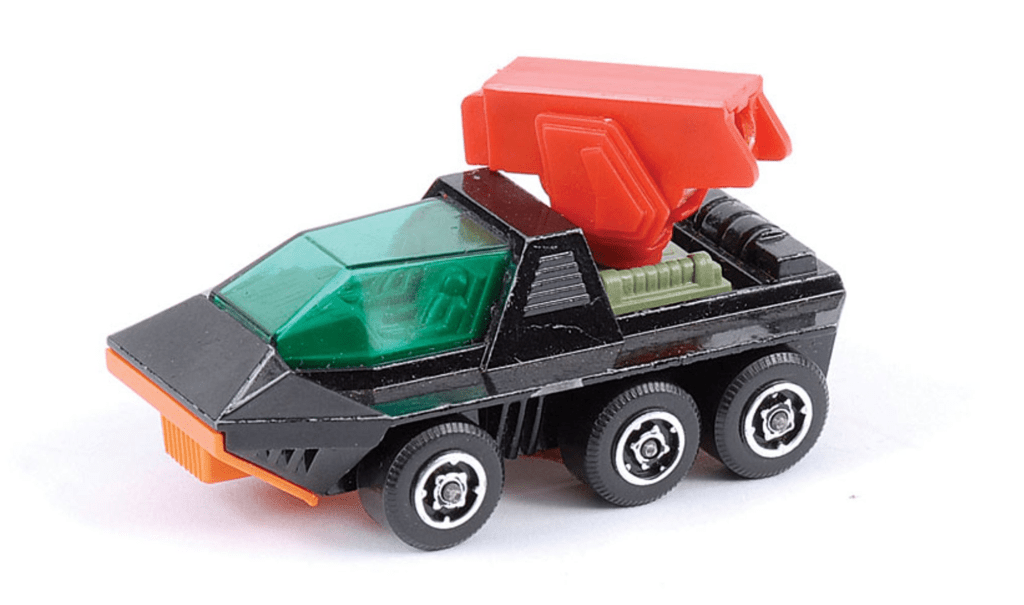 These were small, simple metal and plastic formed space vehicles, sold on card blister packs at ‘pocket money’ prices. A few samples were made in 1979 but never formerly commercially released. However from time to time, what look like production models or salesmen’s samples come up for sale.