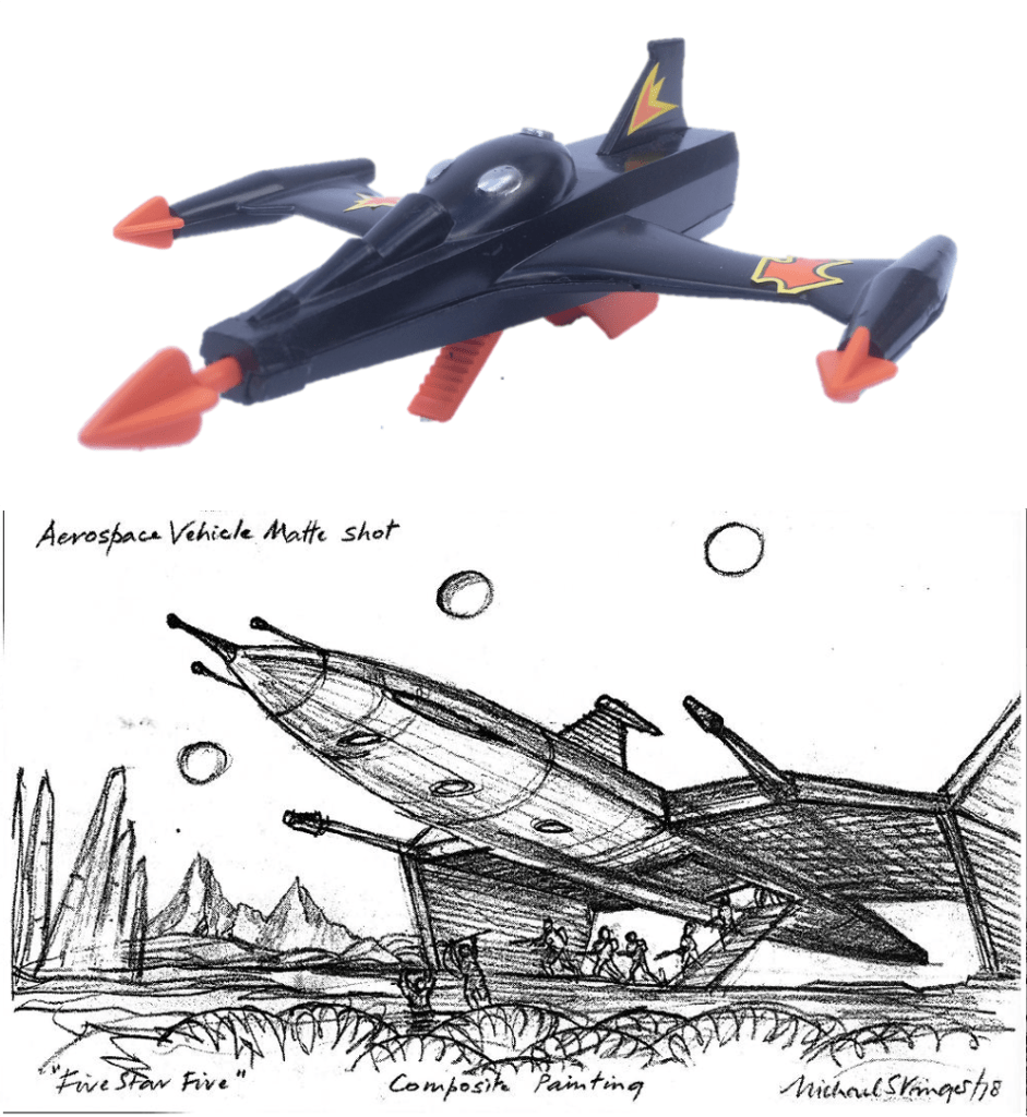 Is the Dinky design for the Trident Starfighter linked to Michael Stringer’s initial drawings of a spaceship for a never produced movie by Gerry Anderson called Five Star Five?